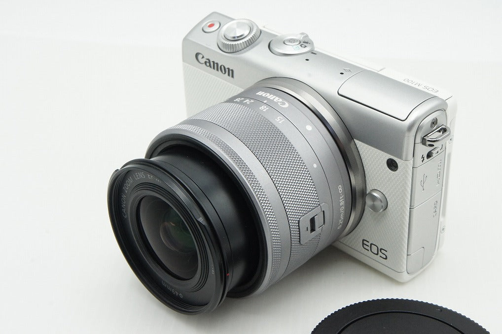 美品 Canon EOS M100 + EF-M 15-45mm IS STM レンズキット ミラーレス一眼カメラ ホワイト ボトムカバー付 260123ar